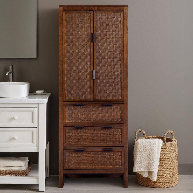Bambu ve tik gibi ağaç türleri, neme karşı dirençli yapılarıyla banyo dolaplarında kullanılan doğal malzemeler arasındadır. Bambu, hafif yapısı ve sık dokulu lifleriyle öne çıkar. Tik ağacı ise doğal yağ içeriği sayesinde suya ve neme karşı dayanıklıdır. Bu tür ağaçlardan üretilen dolaplarda yüzey korumasının doğru yapılmış olması önemlidir.