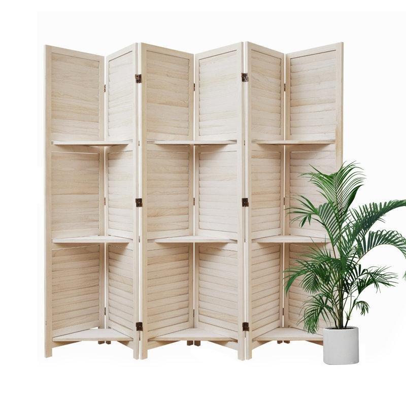 Ahşap Raflı Panjurlu Katlanır 6 Panelli Paravan – 171×232 cm – 184766