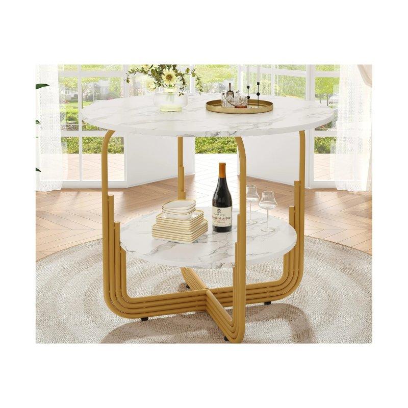 Yuvarlak Beyaz Mermer Masa Gold Ayaklı 140 cm – 92041