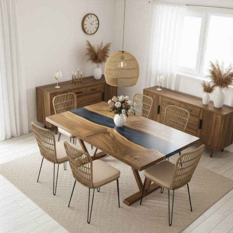 Dikdörtgen Ahşap ve Mermer Masa 240×120 cm – 92182