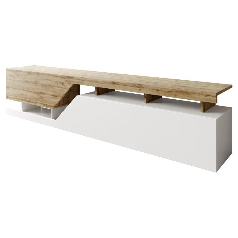 200 cm genişliğindeki bu TV ünitesi, modern yaşam alanları için tasarlanmıştır. Ürün, açık ceviz tonunda endüstriyel ahşap ve beyaz laminat kombinasyonuna sahiptir. Üst kısım sıcak ahşap rengiyle doğal bir görünüme sahipken, alt gövde temiz beyaz tonuyla minimalist bir tasarıma sahiptir. Yüzey mat ve pürüzsüz bir dokuya sahiptir. Bu kontrast, modern ve sıcak bir atmosfer yaratır.