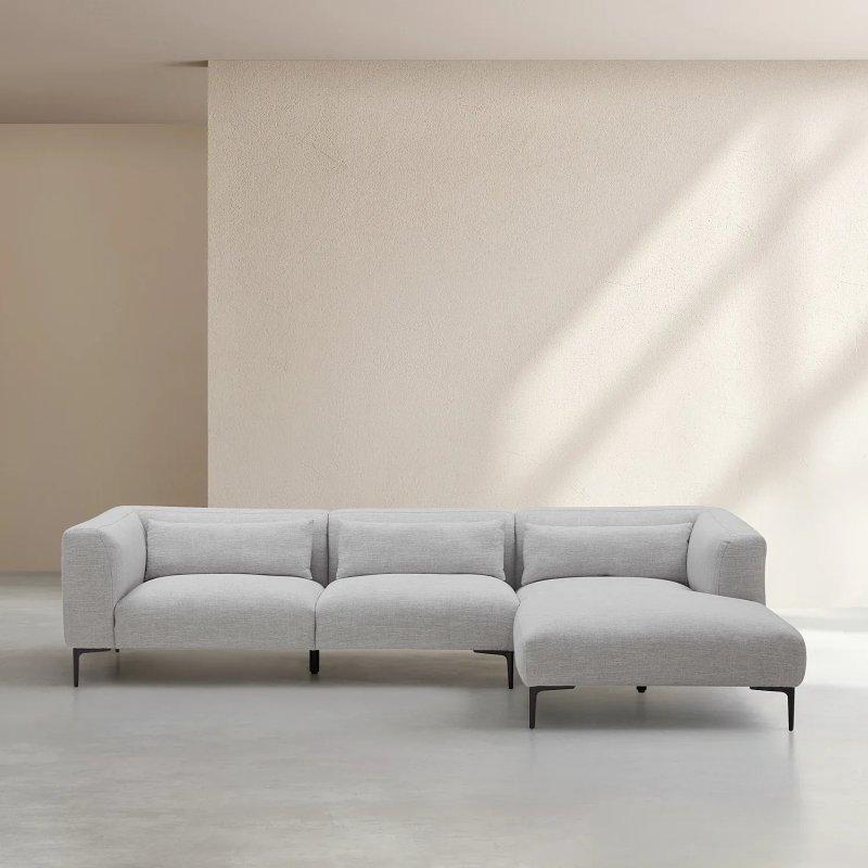 • Modern tasarımı ve kırçıllı dokuya sahip açık gri kumaşıyla LAURA köşe koltuk, yaşam alanınıza ferah bir atmosfer katar.