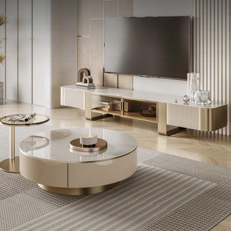 Açık Krem Sintered Stone Üst Yüzeyli Metal Ayaklı TV Ünitesi ve Orta Sehpa Takımı – 79555