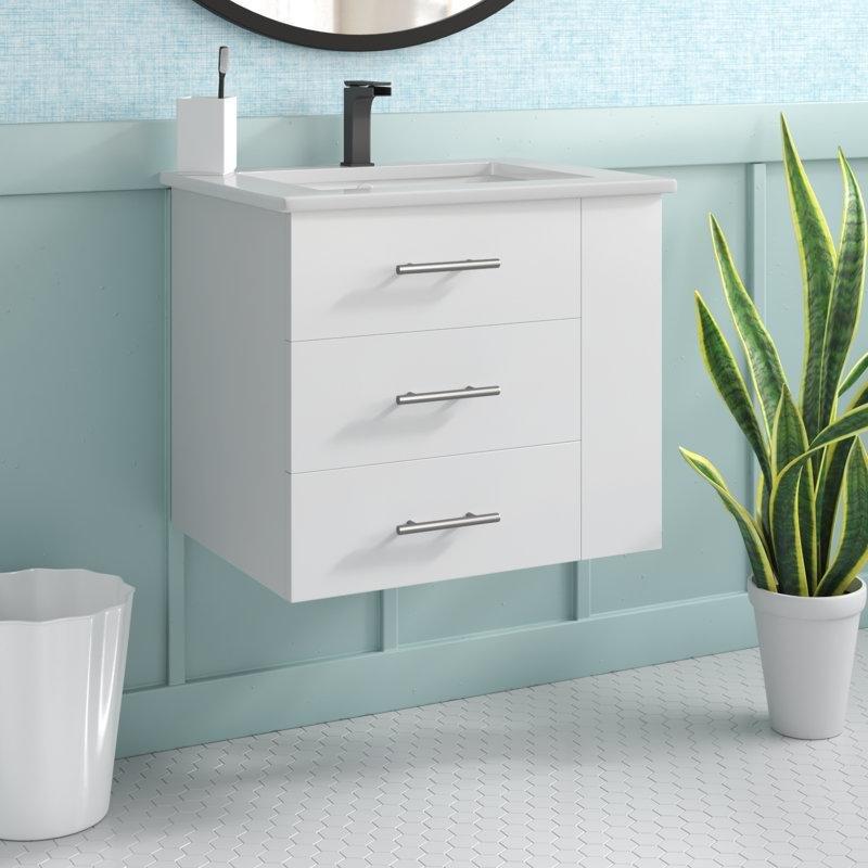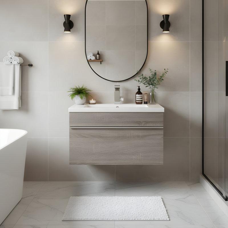• Sete, tezgah altına monte edilmiş beyaz renkte, oval seramik lavabo ve dolap kulpları dahildir.