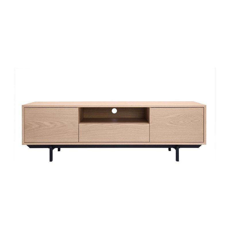 Modern ve şık tasarımıyla dikkat çeken bu TV ünitesi, yaşam alanlarınıza zarafet katacak nitelikte bir mobilyadır. Açık meşe rengi ve yumuşak dokulu yüzeyi, doğal bir sıcaklık ve estetik sunmaktadır. Siyah metal ayakları sayesinde çağdaş bir görünüm yakalayan ürün, hem işlevsellik hem de estetik açıdan oldukça başarılıdır.