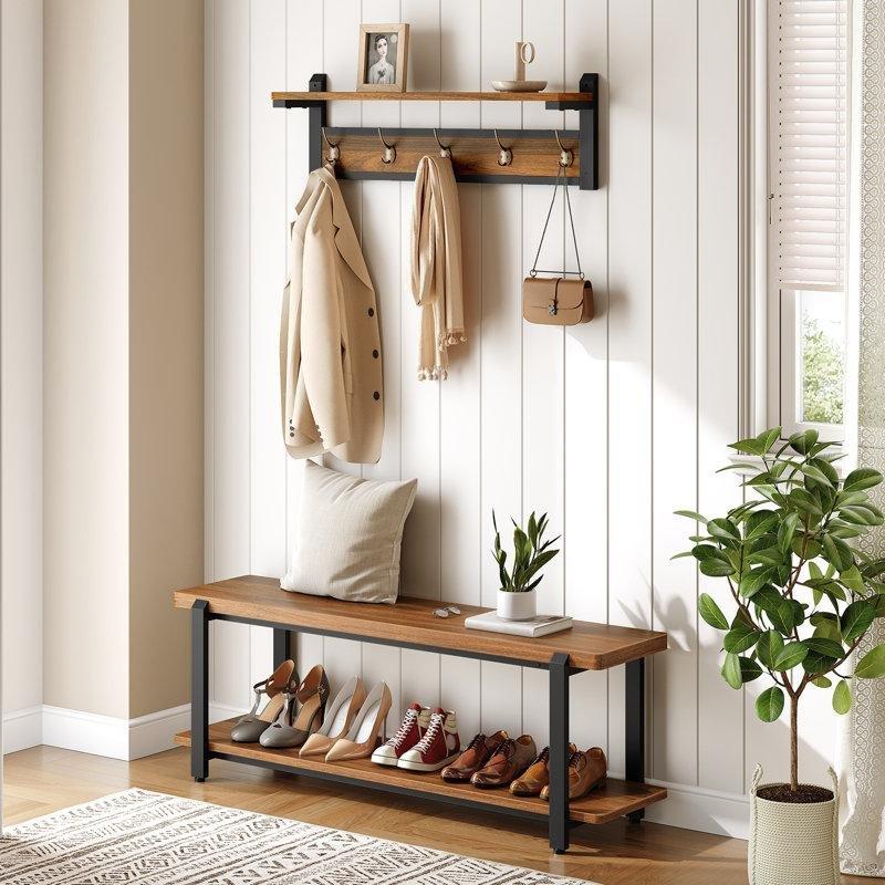 • Set içeriğinde oturma bankı, raflar, askı kancaları ve ayakkabılık bölmeleri bulunur.