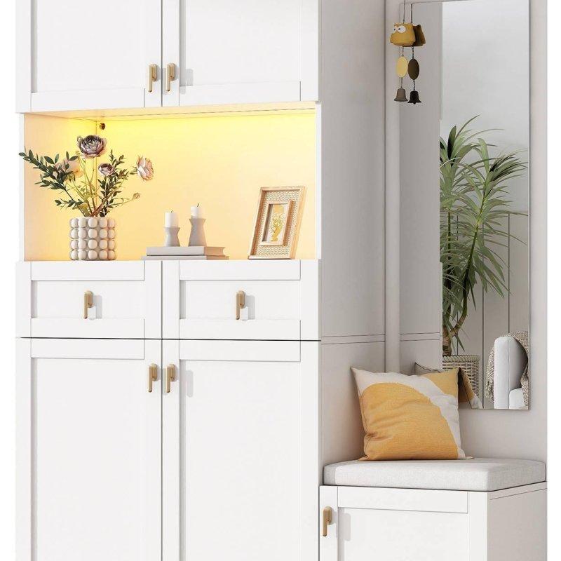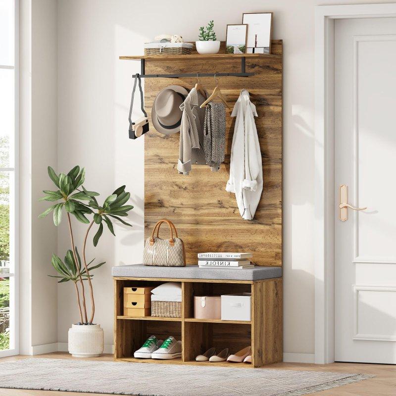 Ahşap Oturaklı ve Ayakkabılıklı Portmanto Vestiyer – 63 cm – 159808