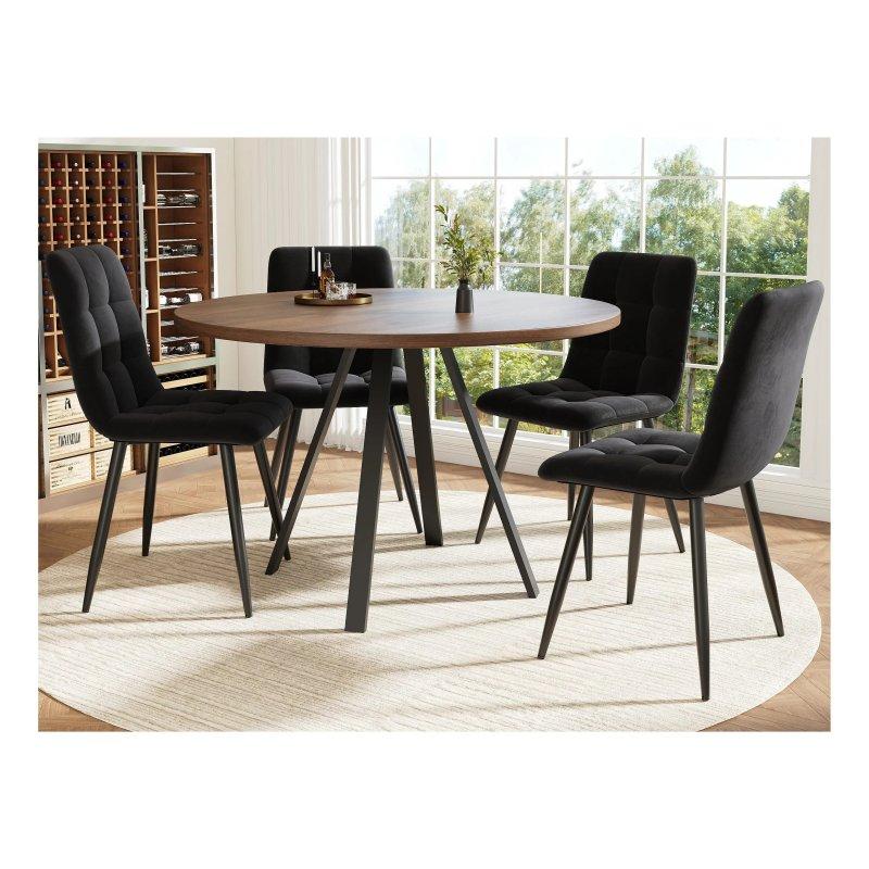 Masif akaçya ahşaptan yapılmış bu 6 parçalı yemek takımı, 140×85 cm ölçülerinde ve 77 cm yüksekliğinde tasarlanmıştır. Tezgah plakası 26 mm kalınlığında olup, doğal ağaç kenarı görünümüne sahiptir. Siyah boya ile kaplanmış U şeklindeki metal ayaklar, masaya yüksek stabilite ve tasarıma uygun bir kontrast sağlar. Takım, 4 adet gri renkli sandalye ve 140×40 cm ölçülerinde masif akaçya ahşaptan yapılmış bir oturma bankası içerir. Sandalyeler 48 cm oturma yüksekliğinde, 55 cm oturma derinliğinde ve 86 cm toplam yüksekliğindedir. Gri sandalyeler ergonomik tasarıma ve döşemeli oturma yüzeyine sahip olup, rahat bir oturma deneyimi sunar. Yüzeyleri su ve bez ile kolayca temizlenebilir. Bankasının oturma yüksekliği 45 cm, oturma derinliği 40 cm ve malzeme kalınlığı 26 mm’dir. Her ürün doğal ağaç desenleri nedeniyle benzersizdir. Takım, basit montaj gerektiren paket servisi ile güvenli şekilde teslim edilir. Ağırlığı 48 kg’dır.