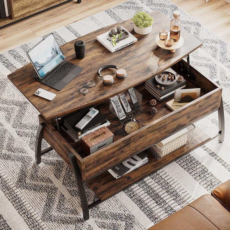 Sehpanın altında geniş bir gizli depo alanı bulunur. Dizüstü bilgisayar, kumanda, oyun veya diğer sık kullanılan eşyaları saklayabilirsiniz. Bu şekilde eşyalarınız görünmez ve temiz kalır. Tabla yüzeyinin kaymayan ve çizilmeye dirençli tasarımı temizlik işlemini kolaylaştırır.