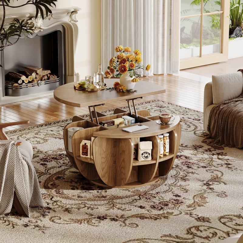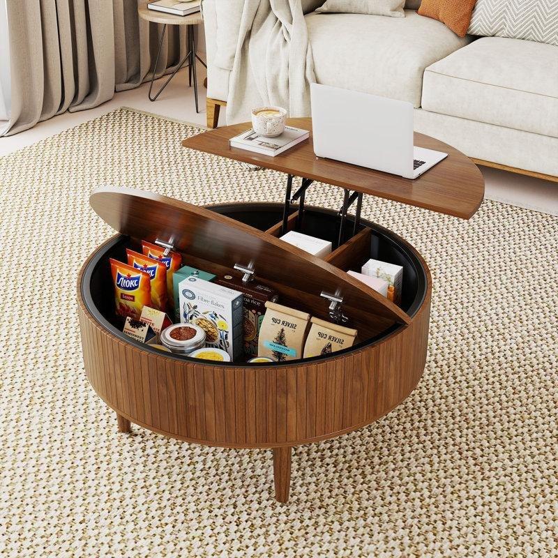 Bu yuvarlak akıllı sehpa, modern bir tasarıma sahiptir ve yaşam alanınızda çağdaş bir hava oluşturur. Ahşap ve gold tondaki metal ayaklarıyla, siyah beyaz veya kahverengi altın renk kombinasyonlarıyla kullanılabilir. Temiz hatları ve basit tasarımıyla her iç mekan stiline kolayca uyum sağlar.