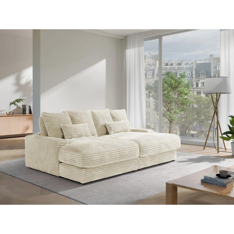 • Modern ve şık bir tasarıma sahip olan bu sol köşe koltuk, bej renkli dokulu kumaşıyla yaşam alanınıza ferah bir atmosfer katar.