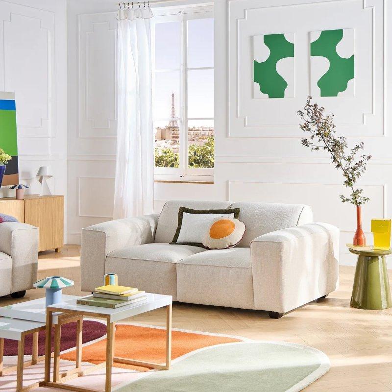 • NIHAD ikili koltuk, vintage tasarımı ve dokulu fitilli kadife kumaşıyla küçük yaşam alanlarına sıcaklık ve karakter katar.