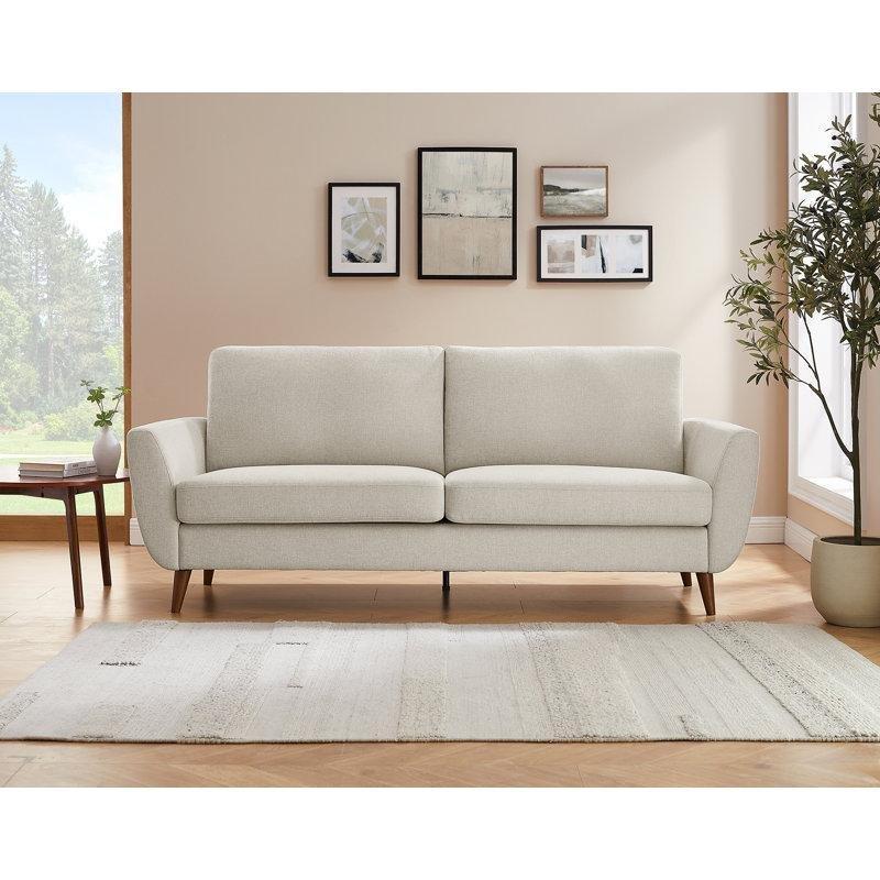 Bej Kadife Ceviz Rengi Masif Ahşap Ayaklı 3 Kişilik Koltuk – 212 cm – 194963
