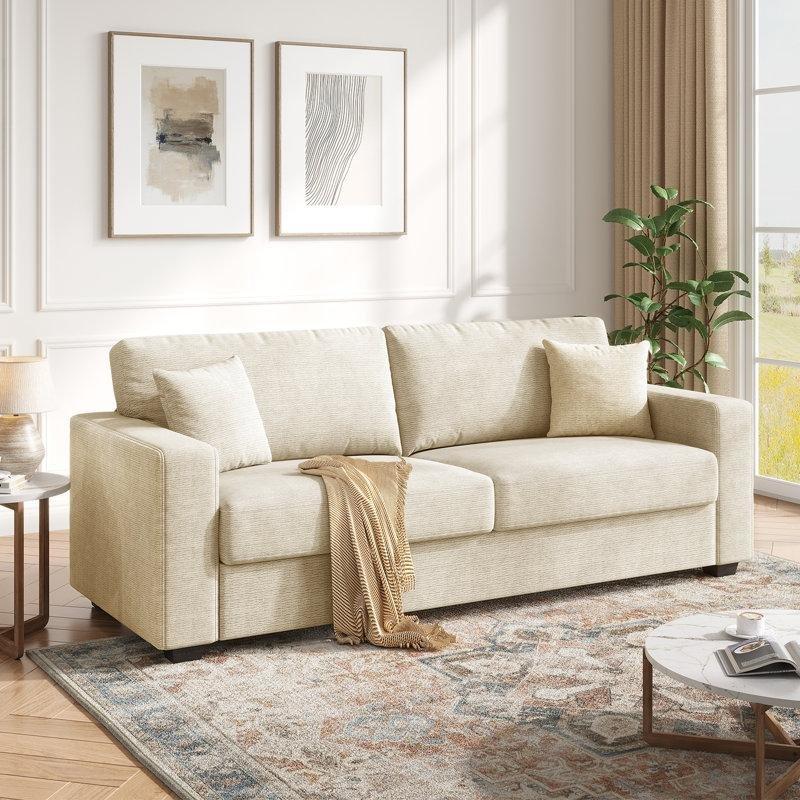 • Oturma minderleri, kolçaklar ve sırt bölümü, cilt dostu dokusuyla bilinen bej renkli keten kumaş ile kaplanmıştır.