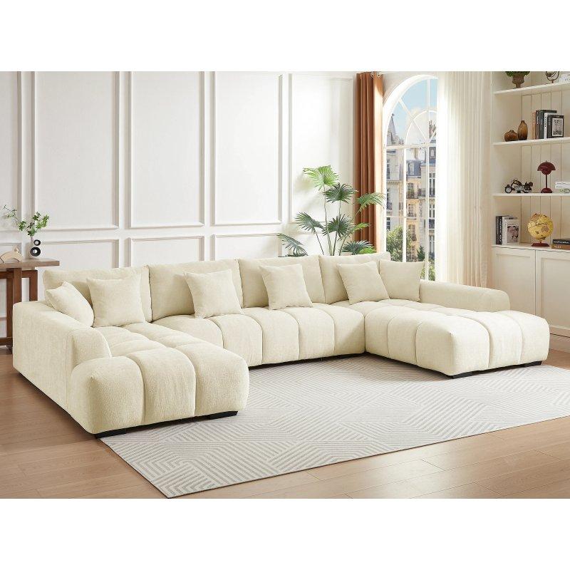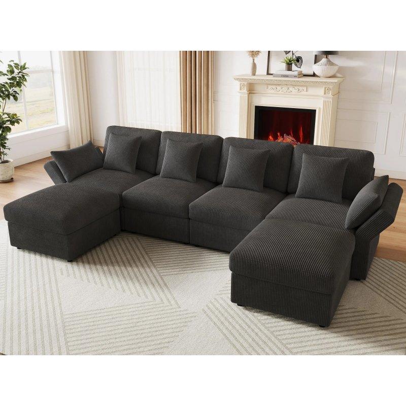 • Geniş aileler ve kalabalık misafir grupları için tasarlanan bu panoramik köşe koltuk, 7 kişilik oturma kapasitesine sahiptir.