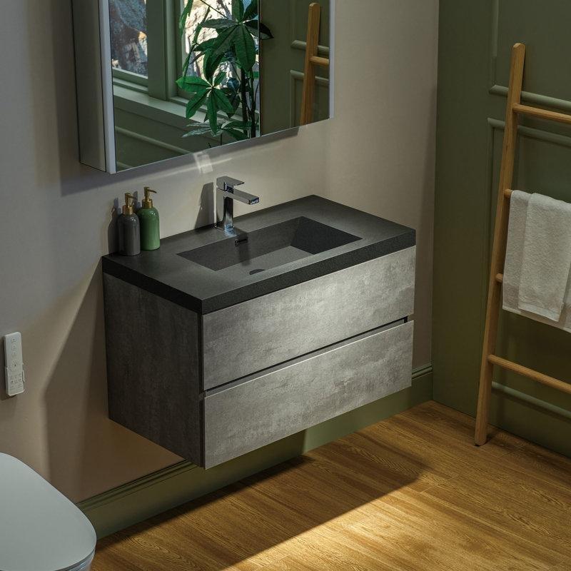 • Sete, tezgah altı montaj tipinde, beyaz renkte, dikdörtgen seramik bir lavabo dahildir.