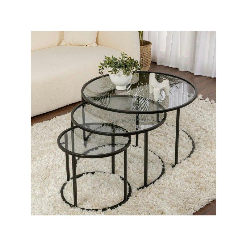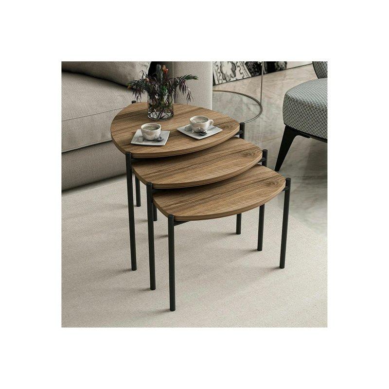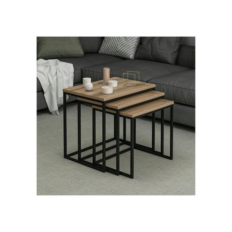 Set üç farklı ölçüde sehpadan oluşur. Küçük sehpa 40×40 cm taban ölçüsünde ve 41 cm yüksekliğindedir. Orta boy sehpa 48×48 cm taban ölçüsünde ve 46 cm yüksekliğindedir. Büyük sehpa ise 60×60 cm taban ölçüsünde ve 51 cm yüksekliğindedir. Bu çeşitlilik sayesinde sehpaları iç içe yerleştirebilir veya farklı noktalarda kullanabilirsiniz.