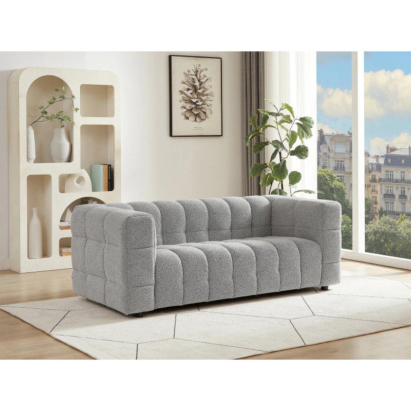 • İskandinav tasarımının yalın çizgilerini yansıtan bu ikili koltuk, bej rengi teddy kumaşı ile yaşam alanınıza sıcak bir atmosfer katar.