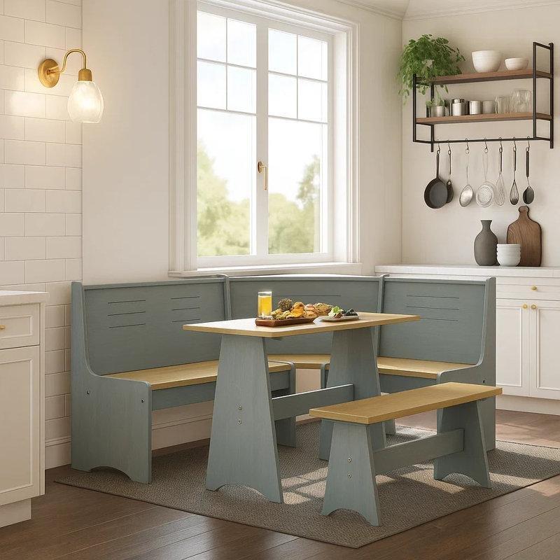 Masif çam ağacından yapılmış bu üç parçalı köşe oturma grubu modern kırsal tasarıma sahiptir. Siyah çerçeve ile bal rengi veya meşe rengi masaüstü arasındaki iki tonlu tasarım, mutfak veya oturma alanınıza şık bir görünüm katar. Köşe bölümü, sabit masaüstü ve ayrı bank olmak üzere beş kişiye kadar rahat oturma imkanı sunar. Köşe bankları gizli depolama bölmeleri içerir. Dikdörtgen masaüstü 24 cm genişlik ve 40 cm derinliğe sahiptir. Masanın yüksekliği 31 cm, bankanın yüksekliği 43 cm’dir. Masaüstü kalınlığı 3,5 cm olup, 500 kg taşıma kapasitesine sahiptir. Kiln kurutulmuş masif çam ağacı kullanılmıştır. Montajı kolay olup iki kişi hızlıca tamamlayabilir. Basit lekeler nemli bir bezle silinerek kolayca temizlenebilir. Küçük alanlar için mükemmel bir çözüm sunarak, daireler ve küçük evler için ideal seçimdir. Kıyafet, modern, kırsal ve endüstriyel dekorasyonlarla uyumludur. Bir yıl garantisi ile gelir.