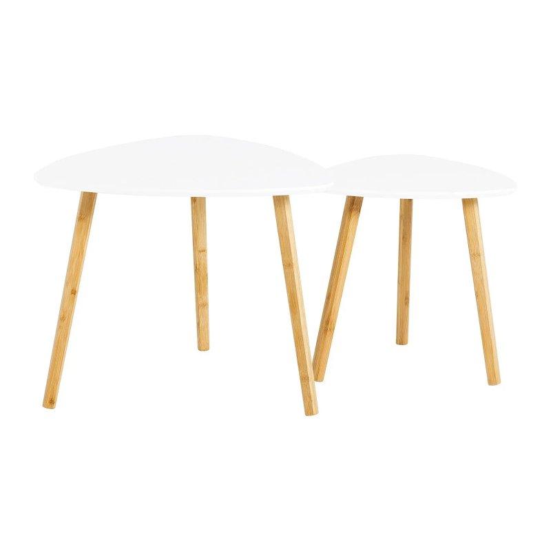 Beyaz lake yüzey pürüzsüz ve parlak bir görüntüye sahip. Doğal ahşap bacaklar sade ve şık bir tasarım oluşturuyor. İki sehpa yan yana veya iç içe kullanılabilir. İç içe yerleştirdiğinizde mekanda yer kazanırsınız.