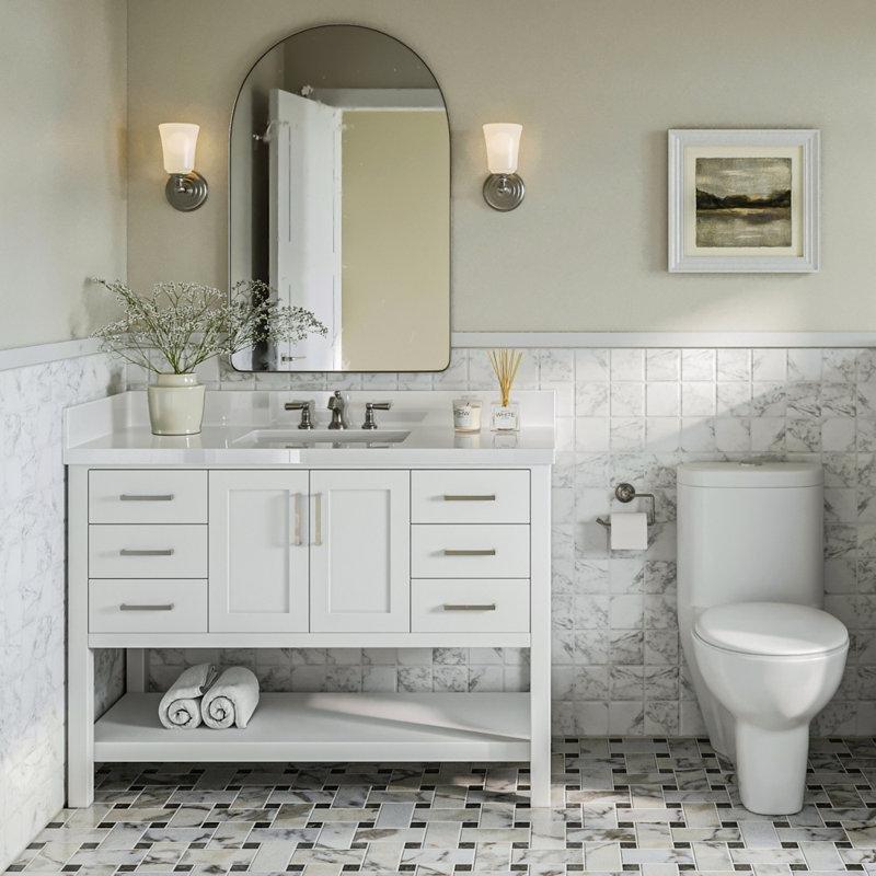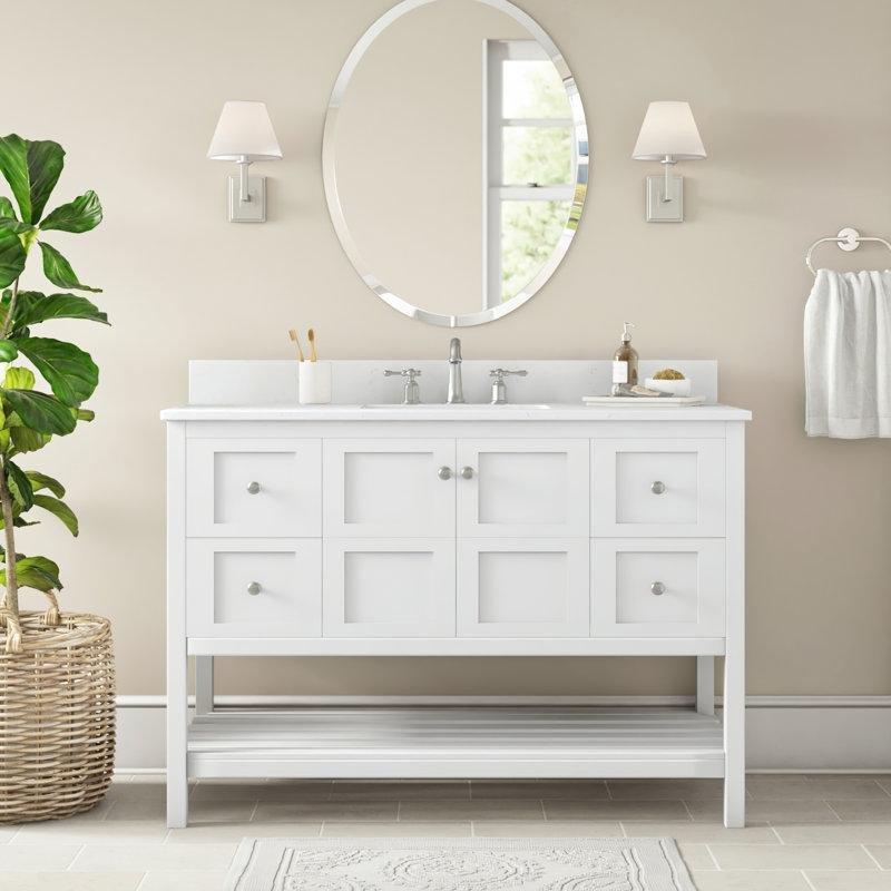 Beyaz Ahşap Oymalı 8 Çekmeceli Ayaklı Banyo Lavabo Dolabı – 122 cm – 199240