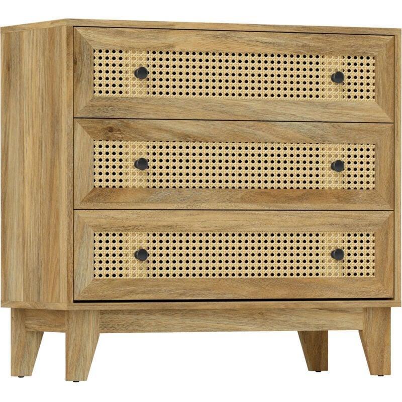 • İskandinav tasarım anlayışıyla şekillendirilen şifonyer, aydınlık beyaz gövde rengi ve konik formlu doğal çam ağacı ayaklar ile üretilmiştir.