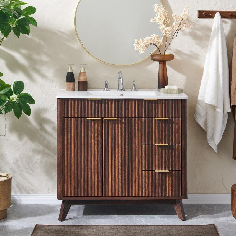 • Masif ahşabın dokulu sıcaklığı ile beyaz kuvarsın zarafetini birleştiren bu ayaklı dolap, banyonuza hem doğal hem de modern bir estetik kazandırır.