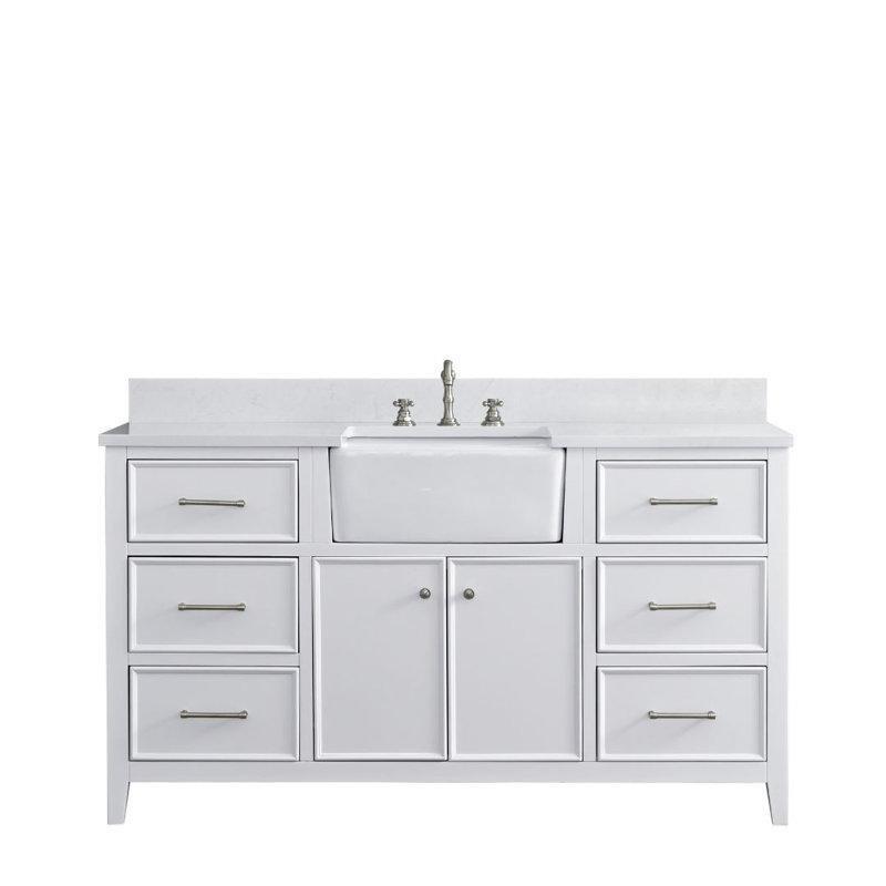 Beyaz Masif Ahşap 9 Çekmeceli Tezgah Altı Lavabolu Banyo Dolabı – 107 cm – 197842