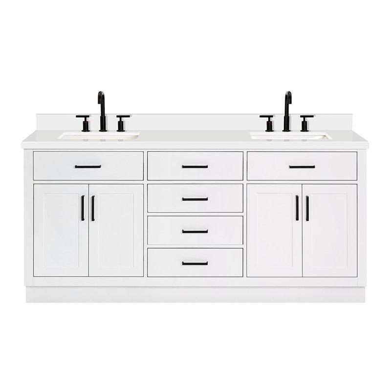 • Carrara beyazı rengindeki dayanıklı taş tezgâh, diş fırçalık ve sabunluk gibi eşyalarınız için geniş bir alan sunarken, sete dahil olan tezgâh arkalığı duvarlarınızı su sıçramalarına karşı korur.