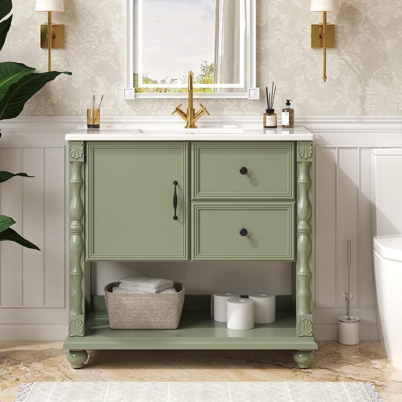 • Lavabo, dolabın orta kısmında konumlandırılmıştır.