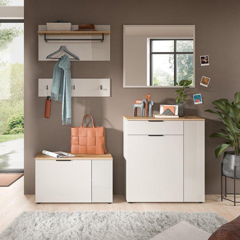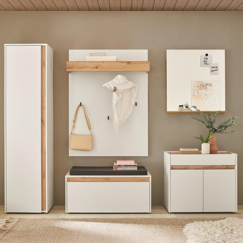 • Depolama bankı, ayakkabılık bölümü, dolaplar, çekmeceler ve askı kancaları sete dahildir.