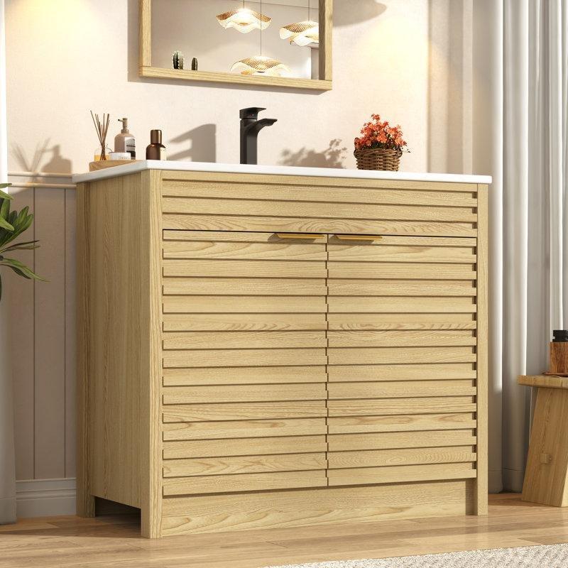 • Dolap ile bütünleşik tasarıma sahip olan seramik lavabo, su taşmasını önleyen bir tahliye deliğine sahiptir.