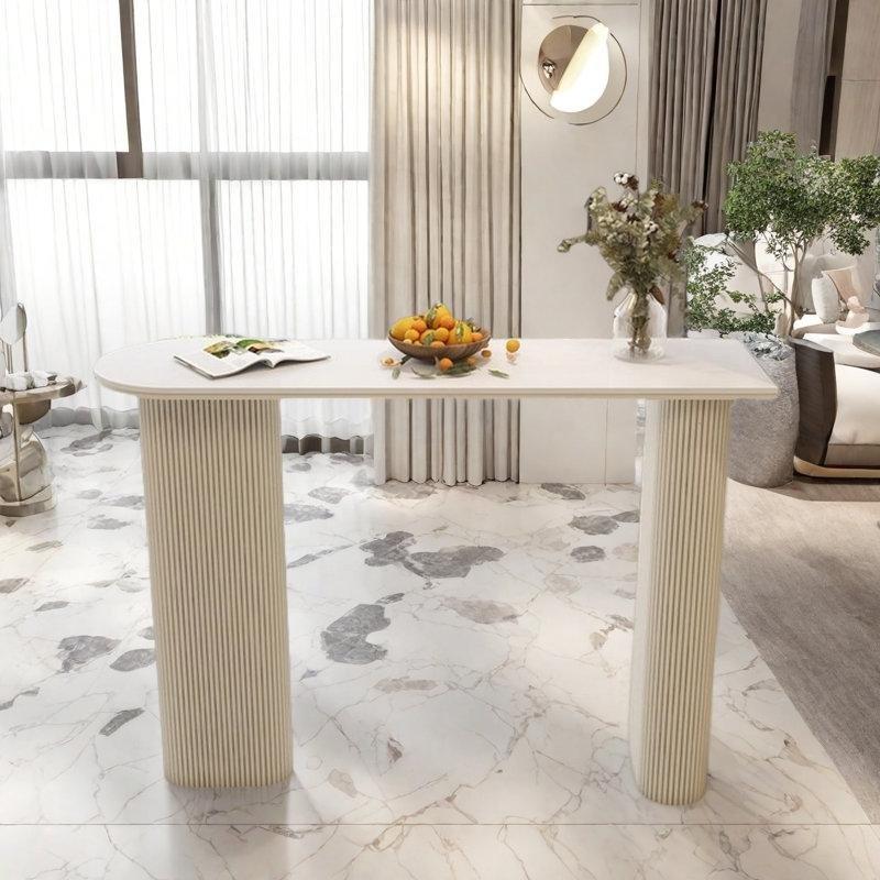 Masanın rengi beyazdır. Beyaz tonundaki tasarım, hem modern hem de sıcak bir atmosfer yaratmaktadır. Yüzey, mermer deseninin parlak ve pürüzsüz dokusuyla birlikte sofistike bir görünüm vermektedir. Oval şekli, keskin köşeleri yumuşatarak mekanın daha davetkar bir hale gelmesini sağlamaktadır.