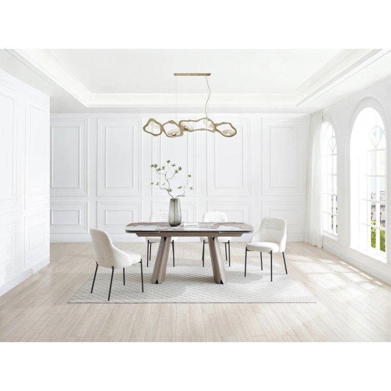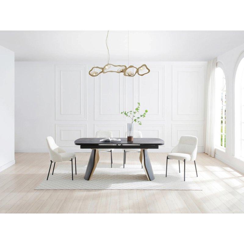 Masanın tasarımı, lüks bir hava vermesine rağmen, beklentinin altında hafif bir yapıya sahiptir. Oval şekli, tasarımı yumuşatarak modern ama sıcak bir ortam yaratmaktadır. Mermer desenli üst yüzey, hem estetik hem de pratik bir seçimdir.