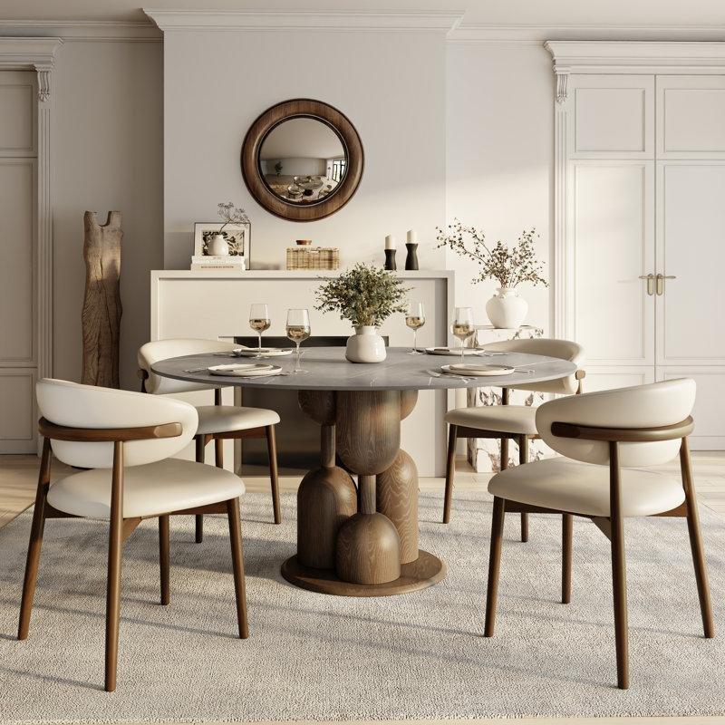 Yüksekliği 76 cm, genişliği 150 cm ve derinliği 90 cm olan bu oval yemek masası, kompakt bir alan için mükemmel bir çözüm sunuyor. Masanın üst yüzeyi endüstriyel ahşaptan yapılmış ve doğal mermer desenli laminat kaplama ile kaplanmıştır. Bu mermer deseni yirmi seçenek arasından seçilmiş olup, en doğal ve romantik görünüme sahiptir.