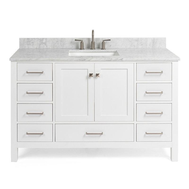 • Pürüzsüz yüzeyli Carrara mermer tezgahı, temiz ve bütünleşik bir tasarım sunan tezgah altı porselen lavabo ile tamamlanmıştır.