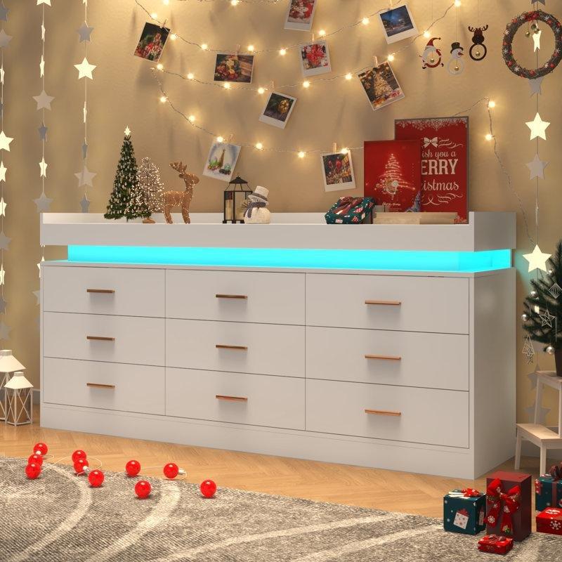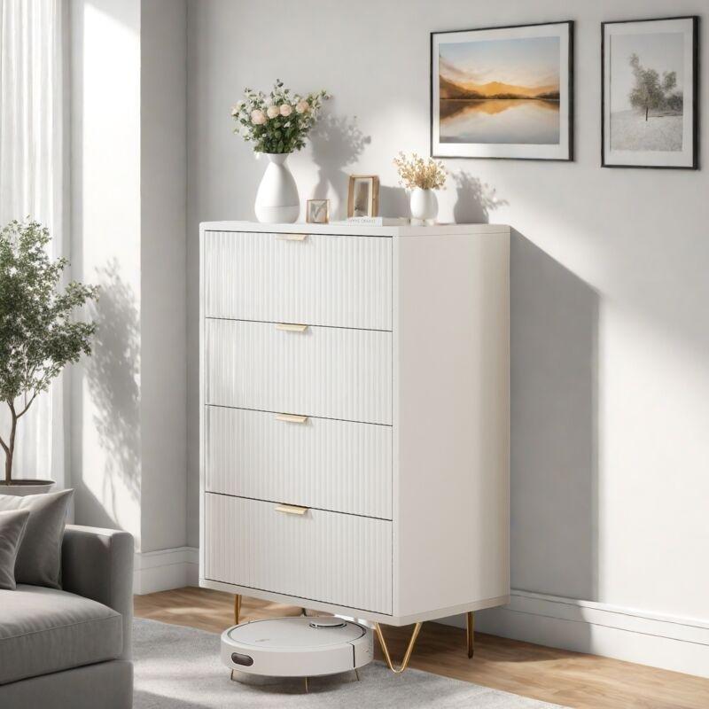 Beyaz Metal İskeletli 9 Kumaş Çekmeceli Geniş Şifonyer – 160×68 cm – 122887