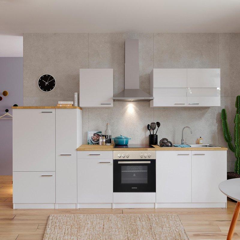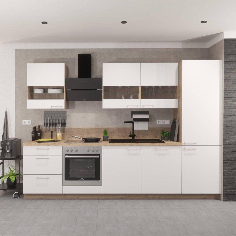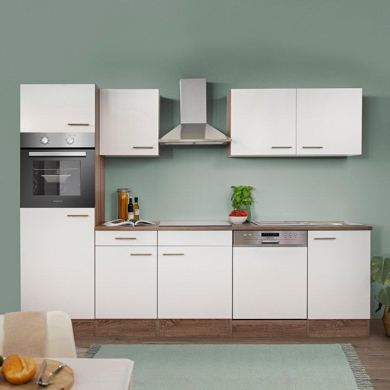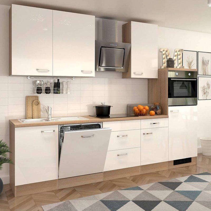 • Bu 8 parçalı mutfak seti, beyaz ön yüzeyleri ve York dekor rengindeki gövde ve tezgahıyla uyumlu bir bütünlük oluşturur.