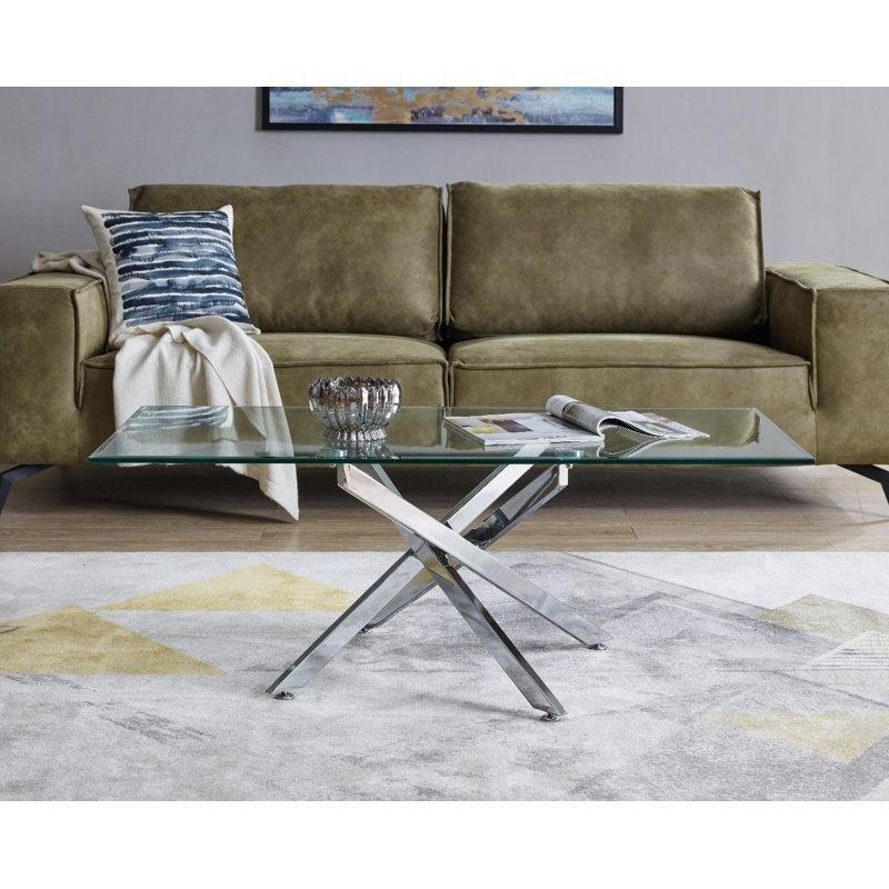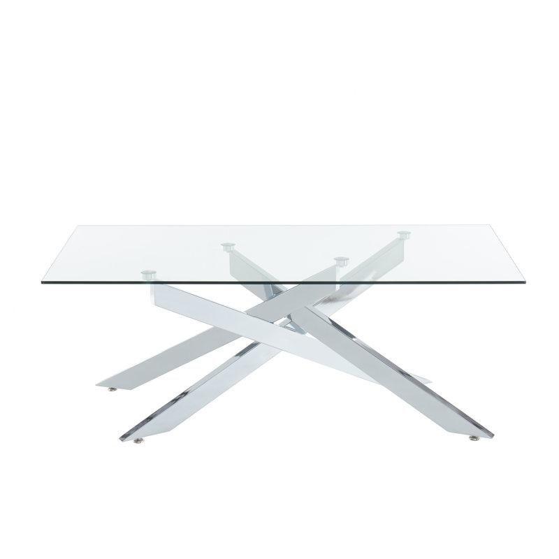 Temperli cam üstü ve parlak metal tubular ayaklı modern tasarımda dikdörtgen orta sehpa. Temiz ve şeffaf cam yüzeyi ile güncel metalik ayakları bir arada sunarak odanızda çağdaş bir görünüm oluşturur.