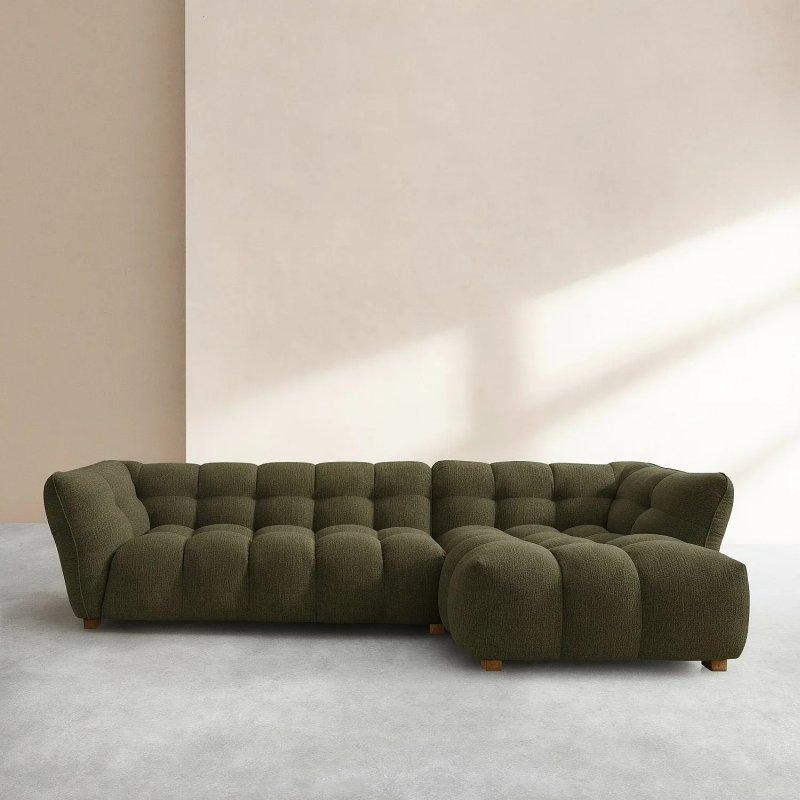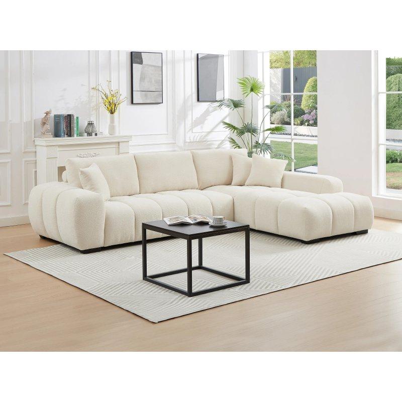• Bu köşe koltuk, trend bir dokunuş sunan Mira kısa buklet kumaş ile kaplanmıştır.