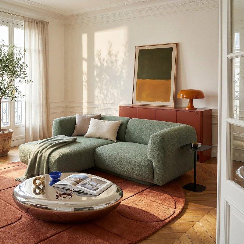 • Dokulu, sıcak ve duyusal bir his sunan kaplaması, çam yeşili rengiyle mekana sakinleştirici bir doğallık katar.
