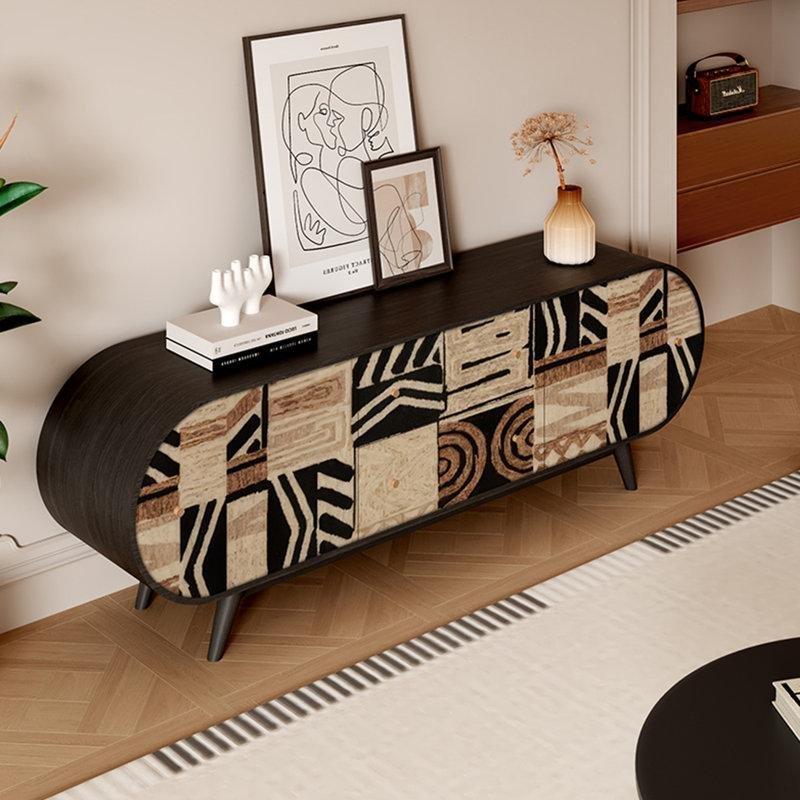 Tasarımda siyah renk ana ton olarak kullanılmış, üzerine geometrik ve soyut desenler eklenmiştir. Mat ve pürüzsüz yüzey dokusu, modern iç mekanlarla uyumlu bir görünüme sahiptir. Desenli bölümler yüksek kaliteli çok katmanlı ahşaptan yapılmıştır ve tasarıma derinlik katmaktadır.