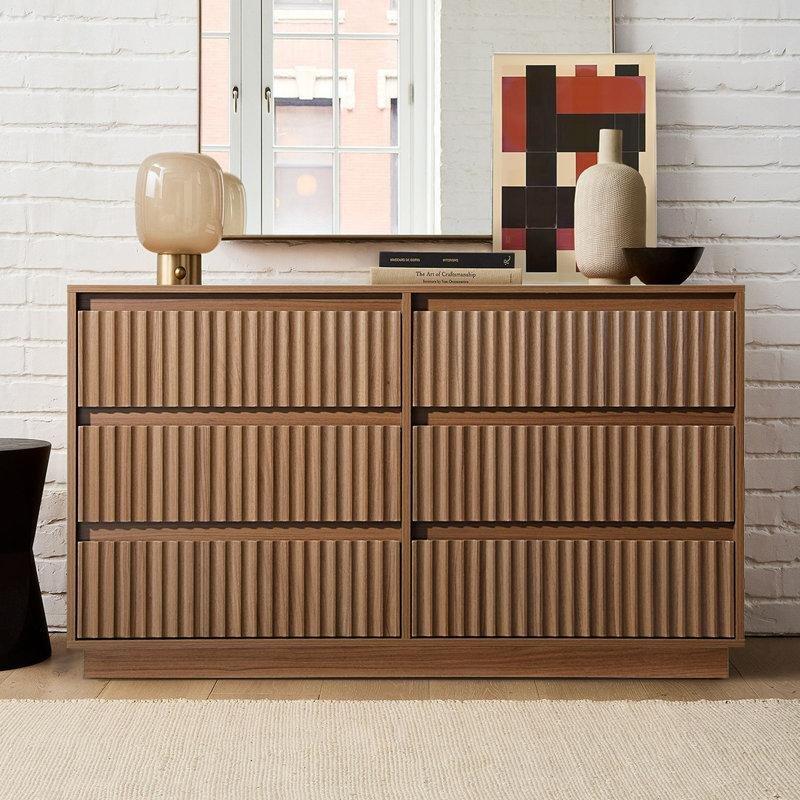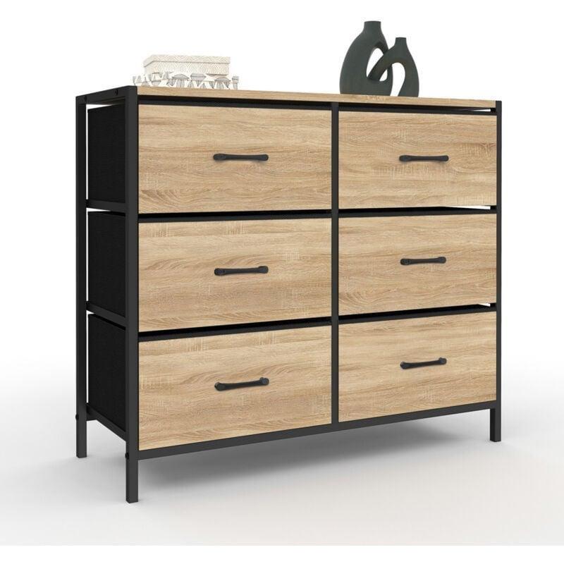 Ceviz Rengi Endüstriyel Ahşap 6 Çekmeceli Metal Kulplu Şifonyer – 140×78 cm – 122719