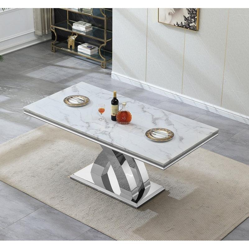 Masanın dikdörtgen şekli, evlerde ve restoranlarda en popüler yemek masası şeklidir. Klasik düz hatları, masayı her tür iç tasarımla uyumlu kılar. Masanın ceviz rengi, hem modern hem de geleneksel tasarımlarla uyum sağlar.
