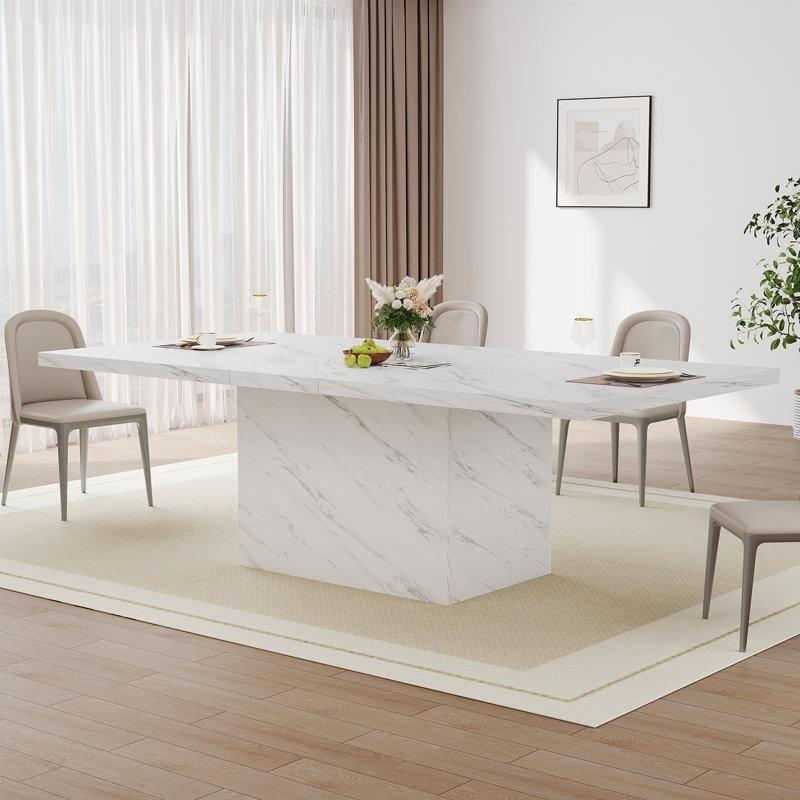 Bu masanın en önemli özelliği 8 kişiyi rahatça oturabileceği kadar geniş olmasıdır. Büyük aile yemekleri veya arkadaş toplantıları için ideal bir boyuta sahiptir. Masanın genişliği, herkesin rahat bir şekilde oturmasını sağlar.