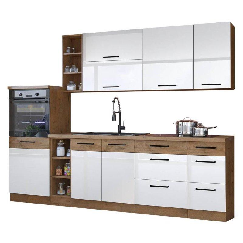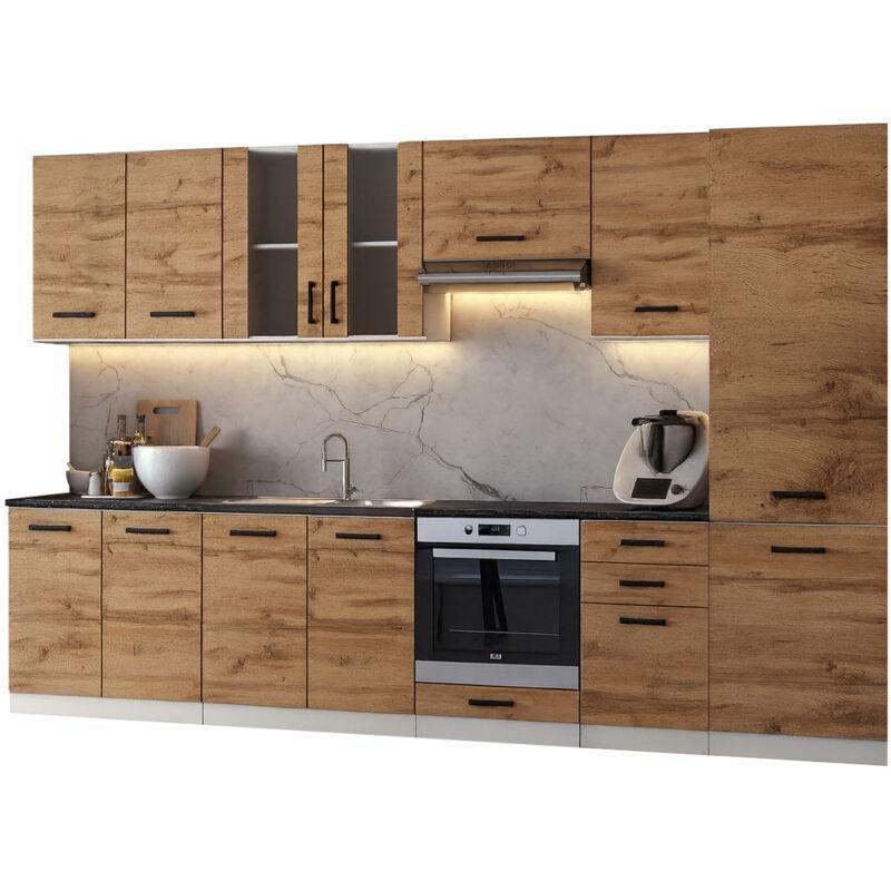 Ceviz Rengi MDF 13 Kapaklı 3 Çekmeceli Ayarlanabilir Raflı Mutfak Modeli – 260 cm – 186592