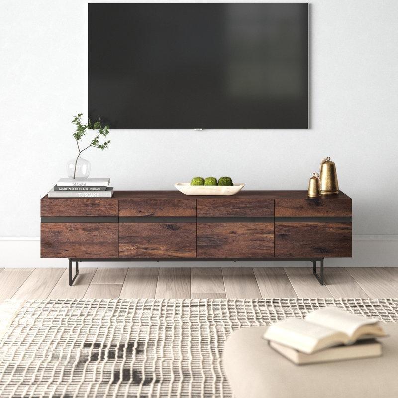 Bu TV ünitesi 180 cm genişliğinde ve 51 cm yüksekliğinde tasarlanmıştır. Endüstriyel ahşaptan yapılmış gövdesi ceviz tonunda doğal bir görünüme sahiptir. Yüzeyi pürüzsüz ve su geçirmez özelliğe sahip olduğu için nemli bir bezle kolayca temizlenebilir.