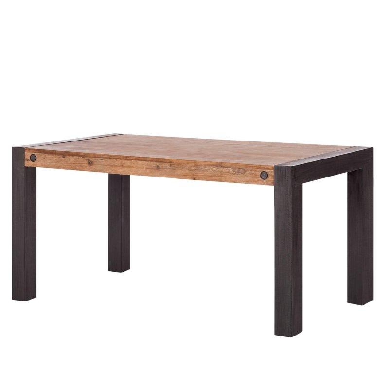 Masif ve endüstriyel çam ahşaptan yapılan bu açılır yemek masası, doğal ahşap dokusu ve düğümleriyle otantik bir görünüme sahiptir. Masanın üst yüzeyi, amaçlı olarak yapılmış çizgiler ve aşındırma işlemleri ile rustik bir karakter taşır. Koyu drift ağacı renginde el ile boyanmış olan masa, sıcak kahverengi tonunda çift ayaklı tabanla uyumlu bir tasarıma sahiptir.