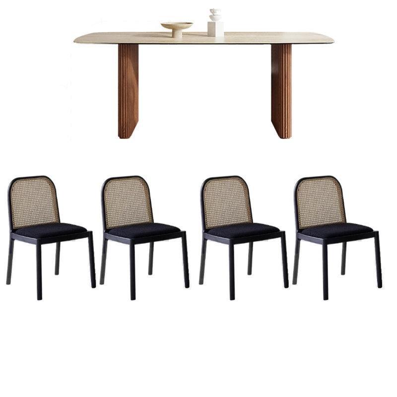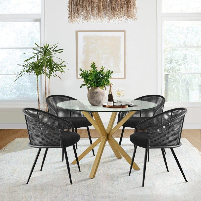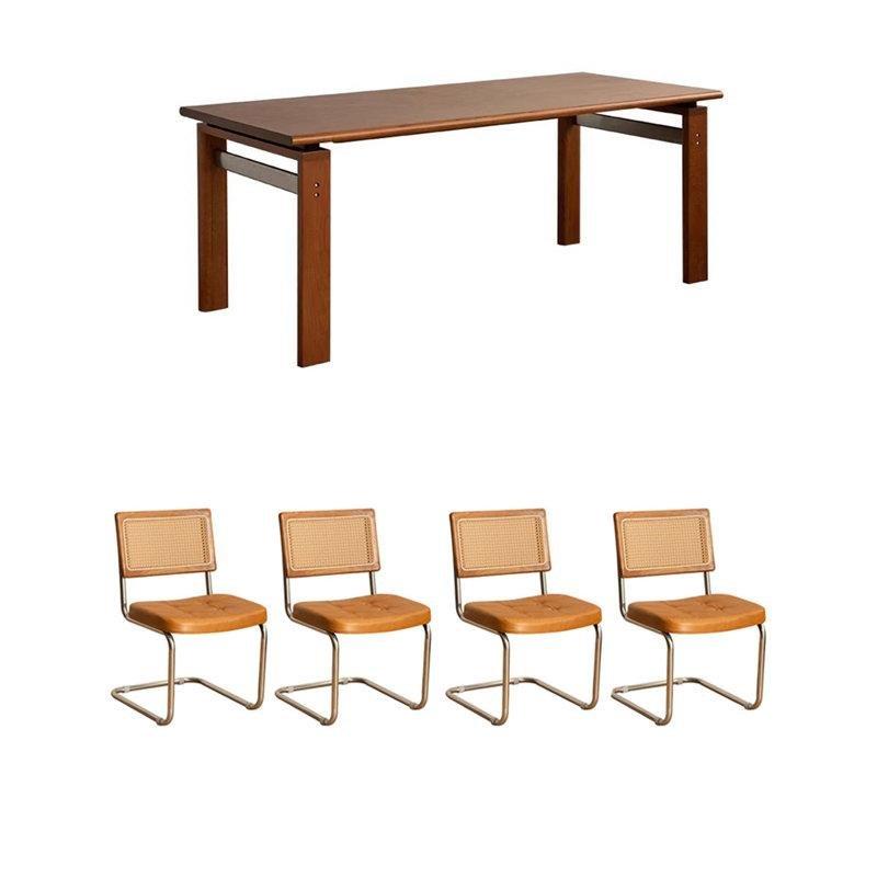 – Kahverengi masa ve sarı oturma yüzeği ile sıcak bir atmosfer yaratır.