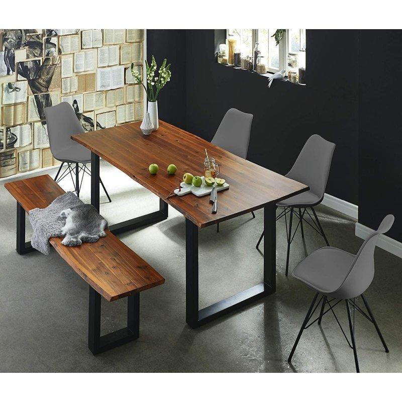 Doğal ahşaptan yapılmış bu köşe mutfak masası seti, modern ve sıcak bir tasarıma sahiptir. Set, bir adet köşe bench, bir adet yemek masası ve bir adet hokkeyden oluşmaktadır. Masanın ölçüleri 150 cm genişlik, 120 cm derinlik ve 80 cm yüksekliktir. Toplam ağırlığı 80 kg civarındadır. Ahşap yapısı oldukça dayanıklıdır ve uzun yıllar kullanıma uygun şekilde tasarlanmıştır. Açık renkli ahşabın mat yüzeyi, mekanınıza doğal ve sıcak bir atmosfer katmaktadır. Köşe bench tasarımı, dar mutfak alanlarında maksimum kullanım sağlar. Hokkesi sayesinde ekstra oturma alanı oluşturabilirsiniz. Masanın düz ve geniş yüzeyi, yemek servisi ve günlük kullanım için yeterli alan sunar. Bu set, aile yemekleri ve günlük aktiviteler için pratik bir çözümdür.